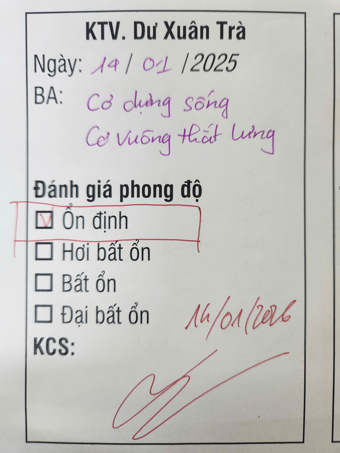 ♦ ĐÁNH GIÁ PHONG ĐỘ TỪ KCS: