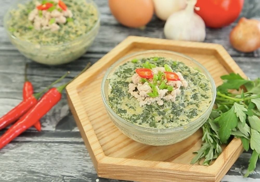 Cách làm: Ngải cứu rửa sạch, thái nhỏ, có thể chần qua nước sôi để giảm vị đắng. Đập trứng vào bát, đánh tan, cho ngải cứu vào trộn đều, thêm một chút nước ấm và gia vị. Hấp cách thủy khoảng 10–15 phút đến khi trứng chín mềm.